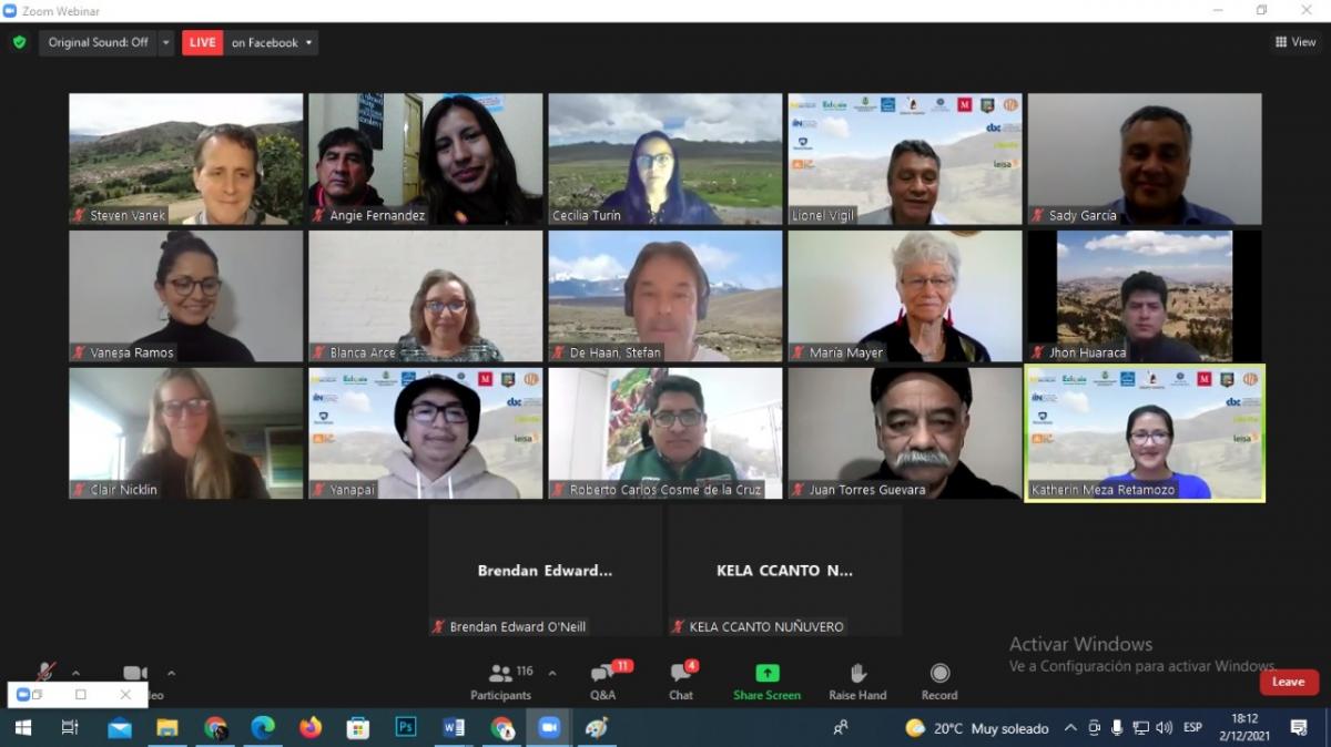 Con motivo de la celebración del bicentenario, nacimiento de la República del Perú, del 4 de noviembre al 2 de diciembre del 2021, quince instituciones peruanas miembros de la Comunidad de Práctica del Programa Colaborativo de Investigación en Cultivos - CCRP Andes de la Fundación McKnight, que promueven la agroecología y la investigación participativa en el Perú, organizaron un ciclo de seminarios virtuales titulado “Agricultura y ganadería familiar Altoandina: Una mirada desde la agroecología en el bicentenario” con dos objetivos. Primero, difundir y visibilizar los resultados e impactos de la investigación transdisciplinaria desde la agroecología, sistemas socio-ecológicos y enfoques participativos de trabajo genuino con agricultores y agricultoras de los Andes del Perú. Y segundo, incidir en las políticas nacionales para promover la agroecología en la pequeña agricultura familiar campesina altoandina para una agricultura respetuosa con la naturaleza, más justa social y económicamente.