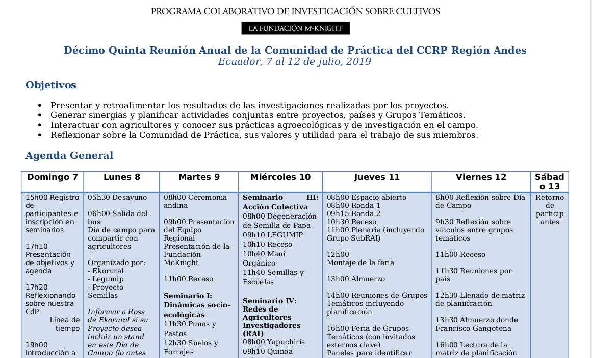 Agenda de la CdP15