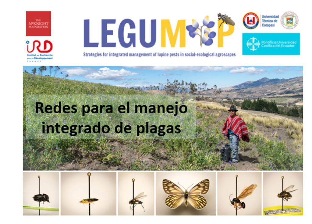 El cultivo del chocho en Ecuador requiere el uso de pesticidas para luchar contra las abundantes plagas. Estudios anteriores han permitido adquirir datos sobre los insectos plaga en chocho, sin embargo, aún quedan falencias sobre el conocimiento taxonómico de estas plagas. El objetivo principal del proyecto LEGUMIP es desarrollar un plan de manejo integrado de las plagas de chocho para proponer alternativas al control químico convencional. Un primer componente de este proyecto es un monitoreo participativo de los insectos plagas y benéficos en los campos de chocho, integrando variables a nivel de parcelas, paisajes y comunidades de campesinos. El trabajo inició con 39 campos sembrados con chocho. Cada campo tiene tres trampas monocromáticas (tarrinas amarillas) y 3 trampas “pitfall” (vasos plásticos). Los agricultores colectan cada 15 días los insectos y se hacen estudios complementarios sobre la estructura del paisaje agrícola con la ayuda de drones y sobre las características sociales de las comunidades campesinas a través de encuestas. Hasta ahora se han identificado, entre insectos plagas y benéficos (depredadores y polinizadores), más de 5 órdenes de insectos, principalmente Dípteros, Coleópteros, Himenópteros, Lepidópteros y Hemípteros, en ese orden según su abundancia. Dentro de las moscas, la familia de los Anthomyiidae, conocida como el barrenador del ápice, fue identificada como una plaga muy importante por la pérdida que causa en el rendimiento. Además, se ha observado que esta plaga facilita el ataque de otro tipo de moscas que aprovechan las galerías de la mosca para introducir sus huevos en el interior del tallo de chocho y barrenarlo.