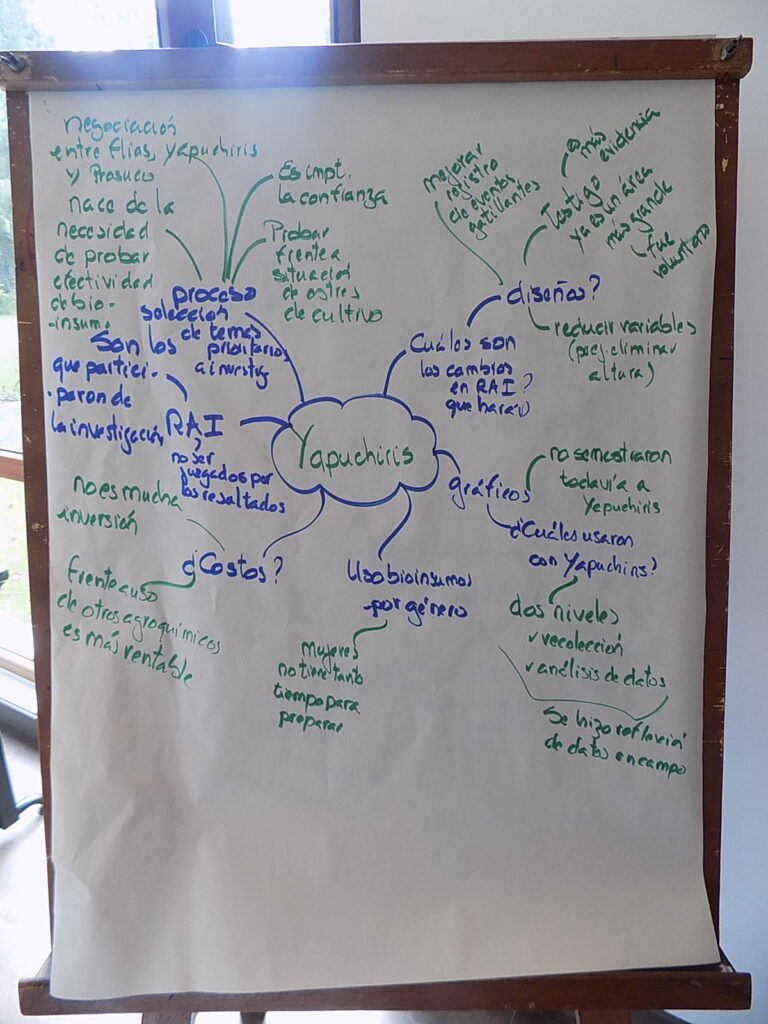 Resumen: Frente a múltiples problemas productivos (suelos, clima, bajos rendimientos, plagas y enfermedades) se vienen implementando diferentes opciones tecnológicas como los bioinsumos, principalmente en el uso de bioles y biofoliares que son de fácil elaboración y aplicación por los agricultores. Diferentes organizaciones y productores vienen promoviendo su uso como parte del enfoque agroecológico y de gestión de riesgos agrícolas para mitigar el impacto de heladas y granizadas principalmente. No obstante, a las diferentes experiencias de uso y de promoción, no queda claro acerca de cuáles son los elementos de su efectividad (solo o combinados) y cuales las razones y propósitos de su uso por los agricultores. En esta línea, PROSUCO se ha propuesto investigar la efectividad de los biofoliares en su aplicación en cultivos principales (papa, quinua) según propósitos de uso priorizados por los agricultores. La investigación parte primero de una caracterización de los bioles con un grupo focal de agricultores expertos con el objetivo de identificar patrones en los materiales empleados, el proceso de elaboración (considerando variables de pH, CE cuyos resultados se encuentran en los rangos de otras investigaciones) y recomendaciones de los usos respectivos. En un segundo momento, se procedió a implementar parcelas de investigación inicialmente en seis comunidades del altiplano norte y centro de Bolivia, diseñando los tratamientos (bioles y combinados con otros bioinsumos como extractos de hierbas y caldos minerales) entre redes de agricultores investigadores (RAI) comunales (con Yapuchiris y no Yapuchiris) y agricultores base, respondiendo a las necesidades de sus contextos productivos. Los parámetros evaluados toman en cuenta variables biofísicas y sociales que hacen a la efectividad de los bioles. Los resultados de la primera campaña agrícola 2018-2019 muestran que los propósitos de uso han sido gatillados para mitigar los impactos de heladas durante las fases fenológicas vulnerables del cultivo de investigación (papa) y los resultados son variables en los rendimientos El monitoreo han incorporado otras variables de medición respecto de los efectos de la aplicación de bioles en los cultivos como el vigor, color y grosor de las plantas y hojas, resistencia al ataque de plagas y el sabor de los tubérculos.