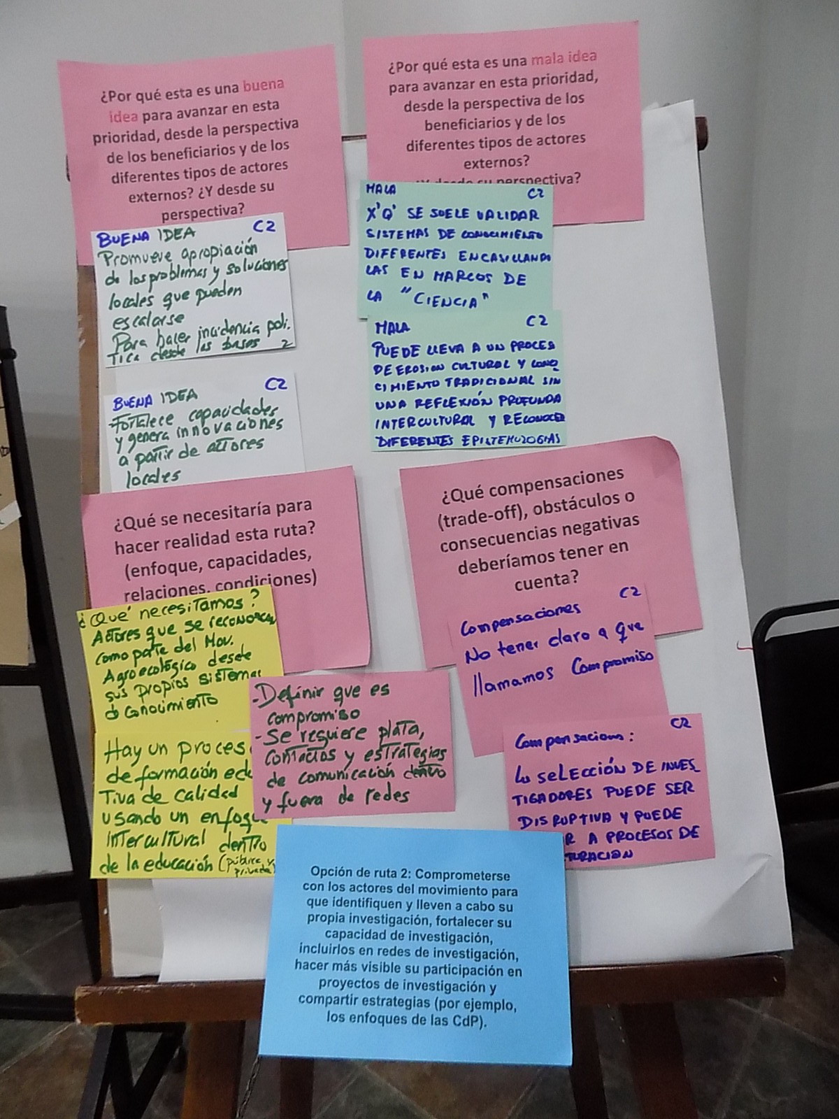 Opción de ruta 2: Comprometerse con los actores del movimiento para que identifiquen y lleven a cabo su propia investigación, fortalecer su capacidad de investigación, incluirlos en redes de investigación, hacer más visible su participación en proyectos de investigación y compartir estrategias (por ejemplo, los enfoques de las CdP).