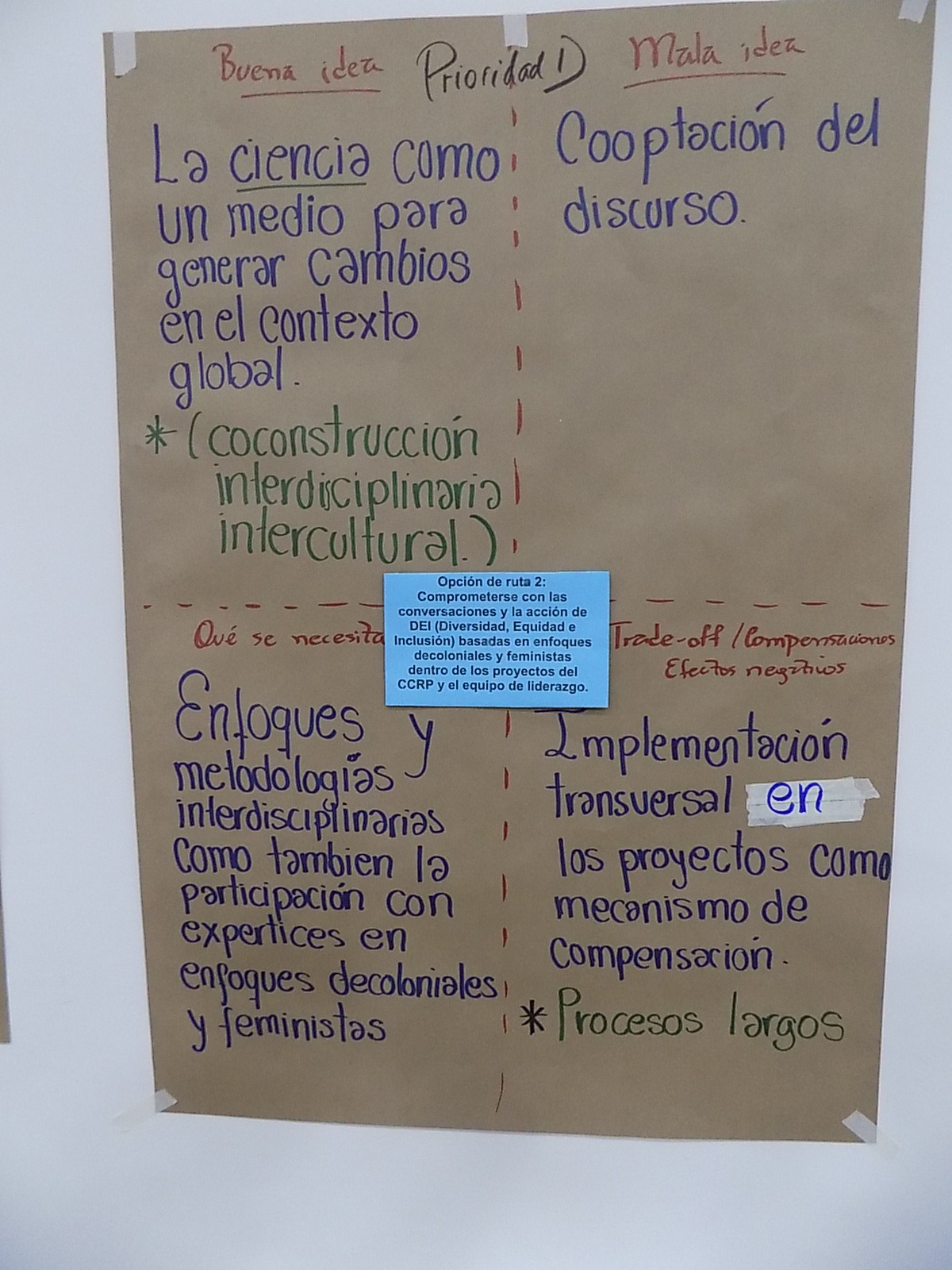 Opción de ruta 2: Comprometerse con las conversaciones y la acción de DEI (Diversidad, Equidad e Inclusión) basadas en enfoques decoloniales y feministas dentro de los proyectos del CCRP y el equipo de liderazgo.