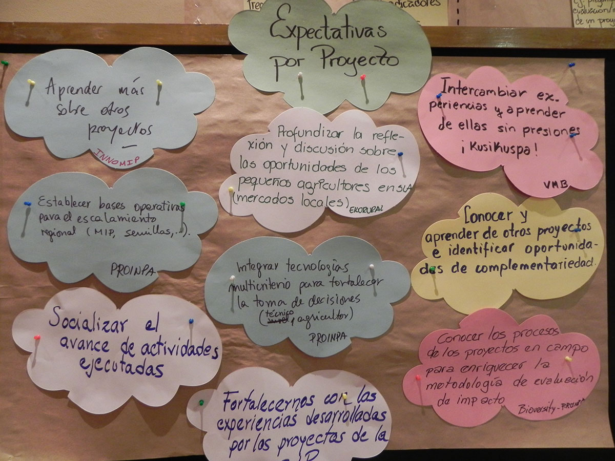 • Conocer los procesos de los proyectos en campo para enriquecer la metodología de evaluación de impacto (Bioversity PROINPA).
