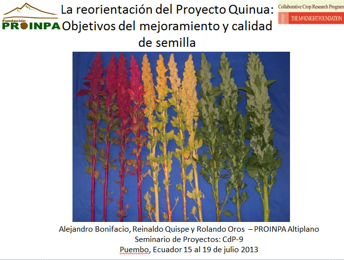 PROINPA-Proyecto de quinua. La reorientación del Proyecto de Quinua. Alejandro Bonifacio.