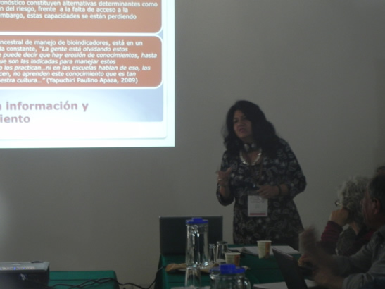 El Proyecto Gestión de Riesgos Agrícolas Comunales ha definido, como uno de sus objetivos, mejorar la capacidad de los agricultores y sus familias en la gestión de los riesgos climáticos. Este objetivo, a su vez se traduce en una de las preguntas de investigación del proyecto, referente a la identificación de las mejores estrategias campesinas de adaptación a la variabilidad climática, en el entendido de que estas estrategias constituyen parte de este conjunto de capacidades locales para una mayor resiliencia frente a la variabilidad climática. En la presentación mostraremos los resultados de una de las investigaciones principales del proyecto, respecto a estas capacidades para enfrentar el riesgo climático, a partir de la identificación de diversidad de estrategias y prácticas locales, sus características, origen y resultados. En esta investigación se recoge la experiencia de “yapuchiris” del Distrito Challa, y se distinguen adicionalmente 2 grupos de agricultores, los que tienen acompañamiento yapuchiri y otros agricultores sin acompañamiento. Esta diferenciación por grupos permite identificar las experiencias y prácticas de gestión del riesgo, y los rendimientos obtenidos en el cultivo de papa. Esta información ha sido recogida a partir de seguimiento a productores en sus parcelas, encuestas, entrevistas, grupos focales y talleres, que han permitido nutrir los procesos participativos de diálogo entre los conocimientos y prácticas locales con los conocimientos técnicos, y que se traducen en la sistematización de las experiencias recogidas. Como parte del proceso, se presentará una reflexión sobre las dificultades entre la concepción teórica de la investigación y los resultados obtenidos, principalmente en torno a la concepción teórica de la gestión de riesgos, y cómo perciben, viven y actúan los productores y sus familias, con relación al manejo del riesgo. Todo esto ha generado la necesidad de repensar el proyecto, obligándonos a redefinir conceptual y metodológicamente el desarrollo de la investigación.